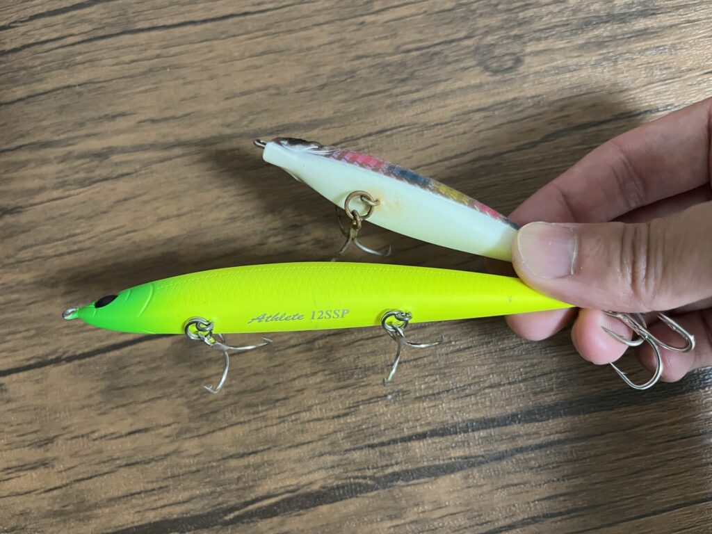 アスリート12SSPは、シンキングペンシルにしては珍しくリアバランスになっています。これにより、遠投が必要な遠浅サーフでも使いやすくなっています。