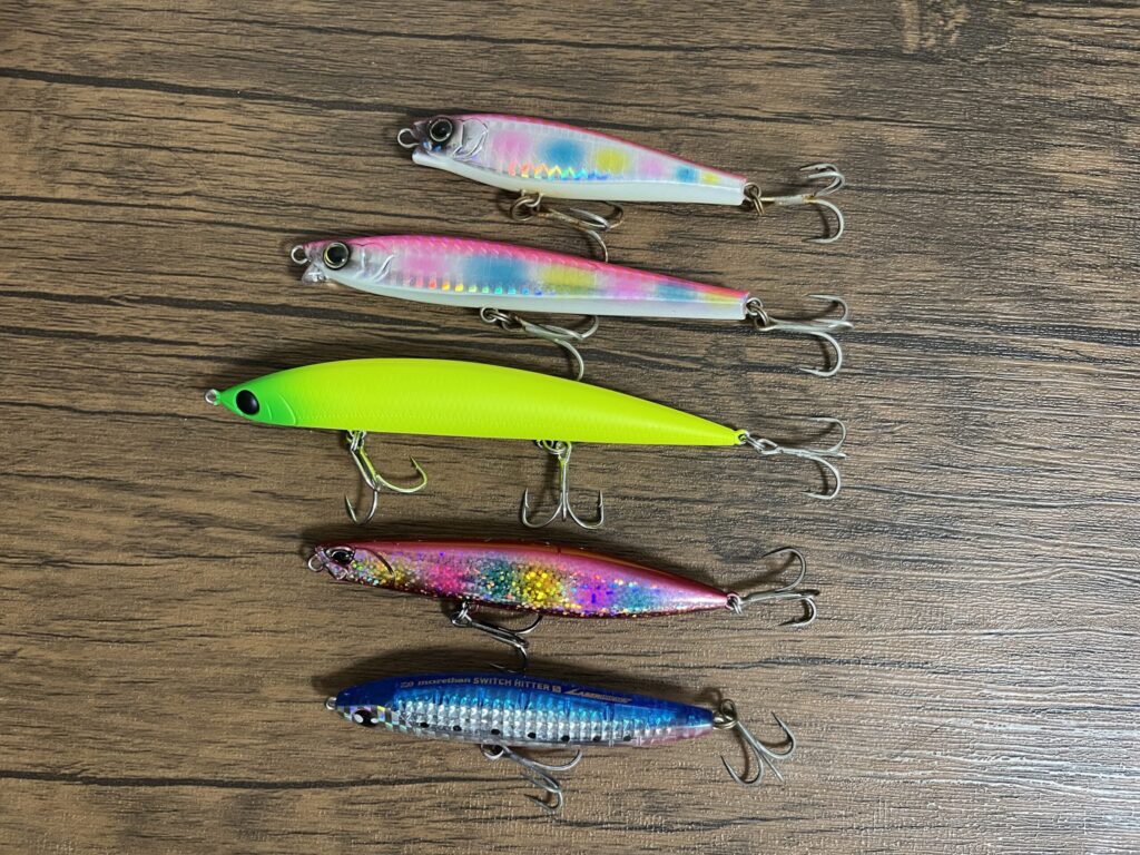 120mmでは少し重すぎる場合に活躍するのが105mm。遠浅で潮や波風が無いような状況でとても使いやすいサイズ感です。また、春のカタクチイワシパターンなどベイトが小さい状況でも活躍します。