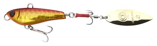 ブレードは大きめのウィローブレード。ゴールドで水中でも目を引きます。小粒シルエットと並ぶと小魚が連なっておよいでいるようにも見えます。
