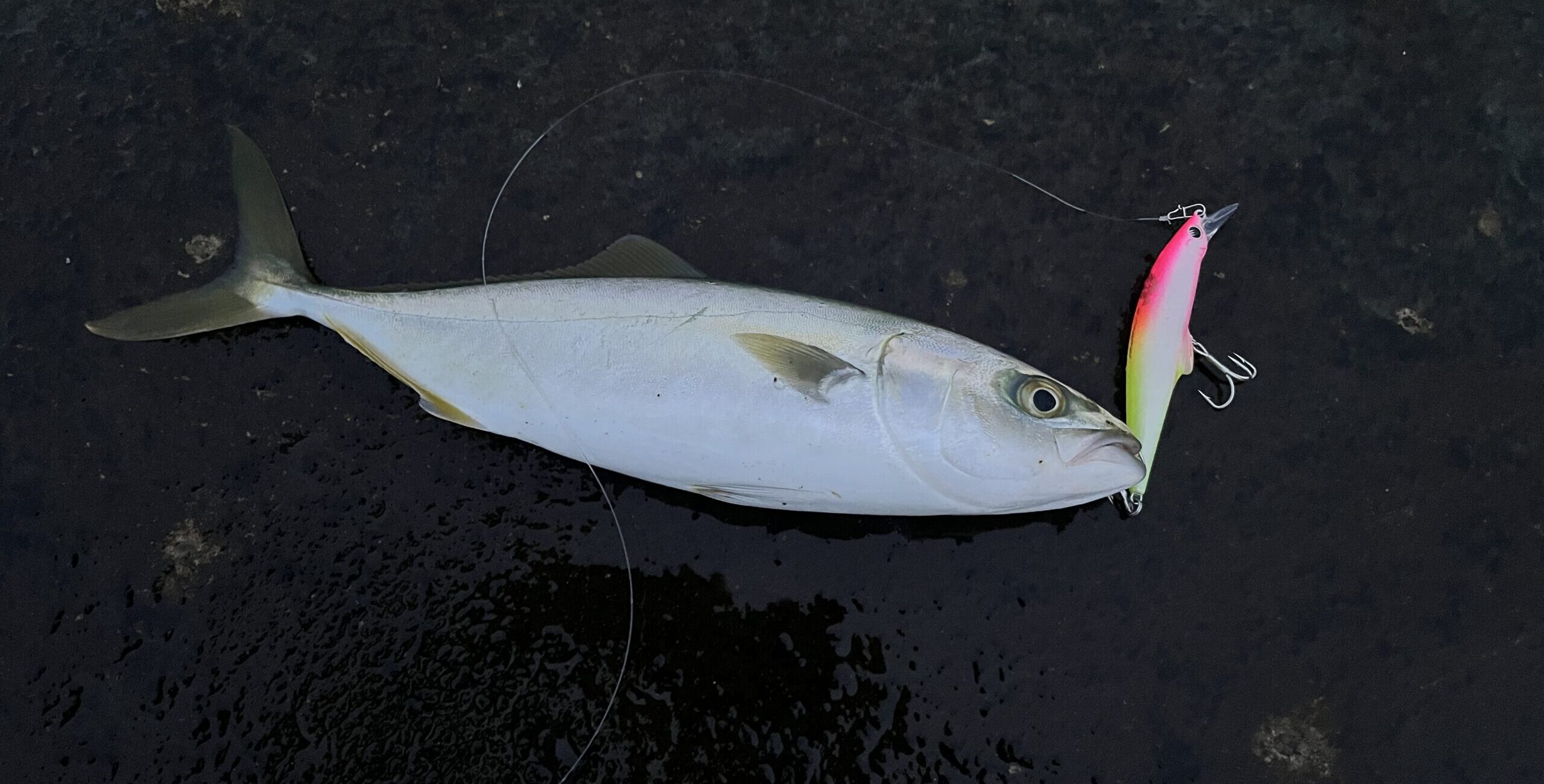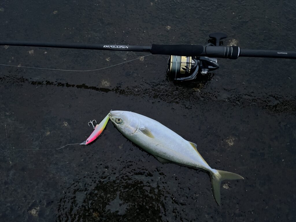 ちなみに聖籠方面の川近くのポイントに行った人の情報だと、ワカシが3匹釣れたそうです。こっちより全然釣れてますね(笑)この程度の雨なら川水の影響もそこまでないようですね。