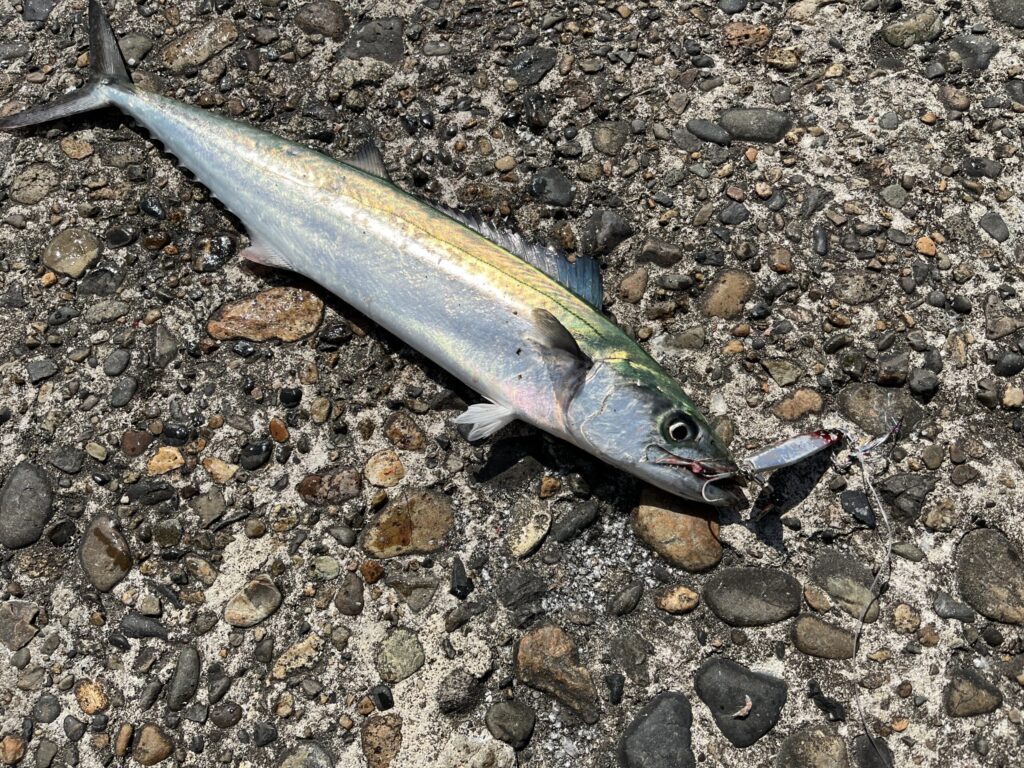 前情報通り、今年のサゴシ(サバ)はミノーやワインドよりジグの方がいいかもしれませんね。ベイトと思われる稚鮎は5cmもないし、サゴシ自体のサイズも小さいですからね。