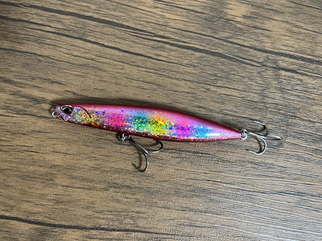 一見するとただの棒みたいですが、サーフでの実績は十分。センターバランスならではのヌルヌル系アクションと、ゆっくり目の水平フォールで、活性が低い魚にも口を使わせてくれます。